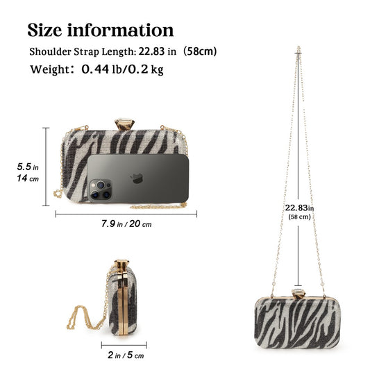 CLM2461 - Miss Lulu Glitter Evening Clutch with Crystal Embellishment & Detachable Chain Strap - Elegant Crossbody or Handheld Bag