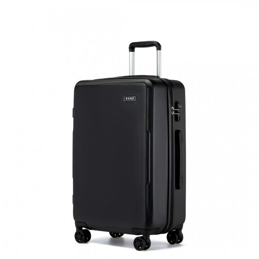 KSK2494 - Kono 3-Piece Minimalist Hard Shell ABS+PC Luggage Set with TSA Lock and 360° Spinner Wheels - Black