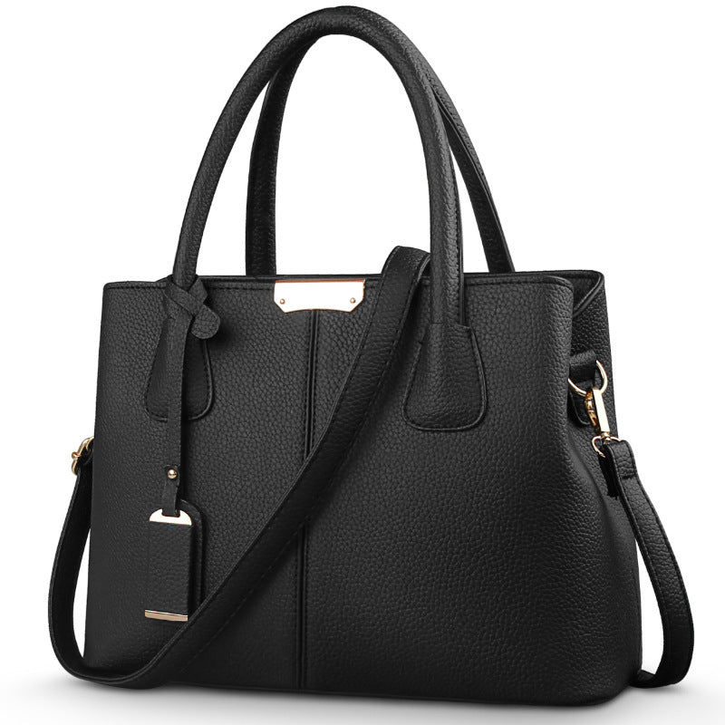 CT44936 Black Chic PU Leather Handbag with Lychee Pattern