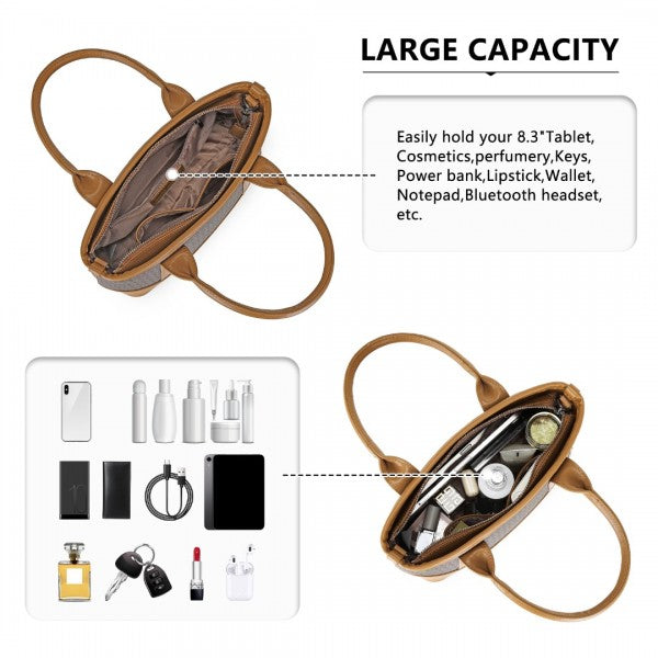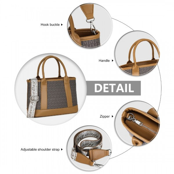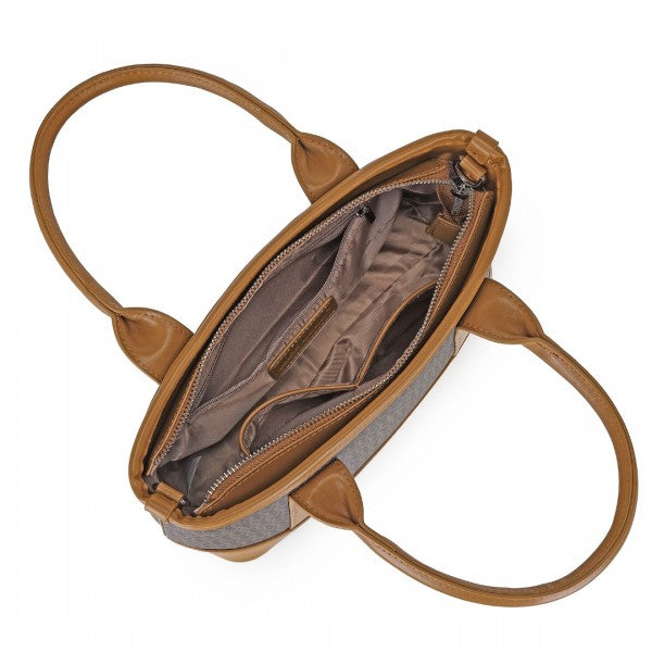 HBM2422 - Miss Lulu Elegant PVC Leather Tote Bag with Monogram Pattern Convertible Shoulder Strap Top Handle Women's Handbag - Brown