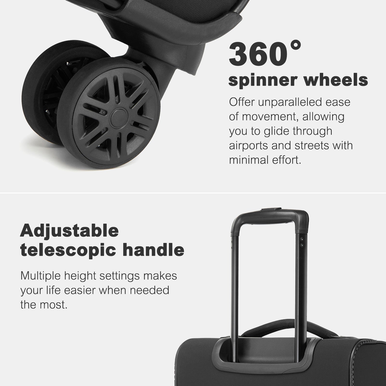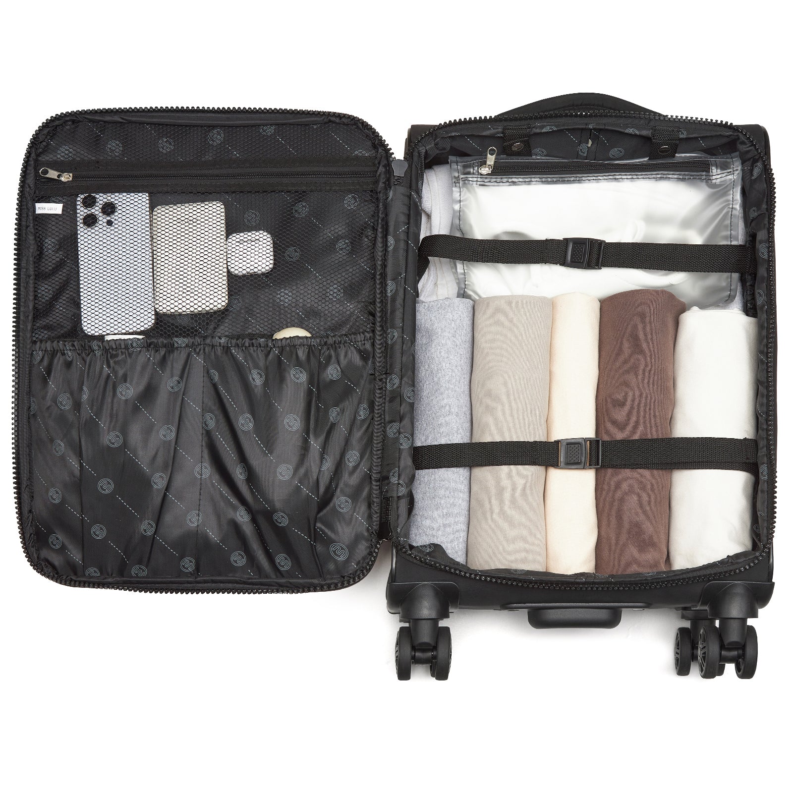 KSN2593 - 20 inch Women's Lightweight Softshell Suitcase with Spinner Wheels and Spacious Compartments - Black