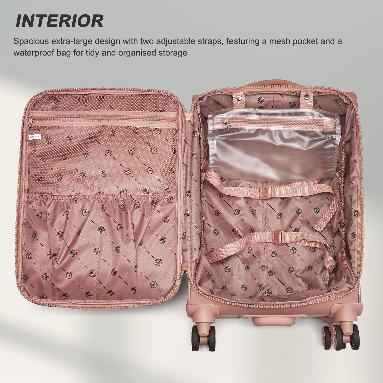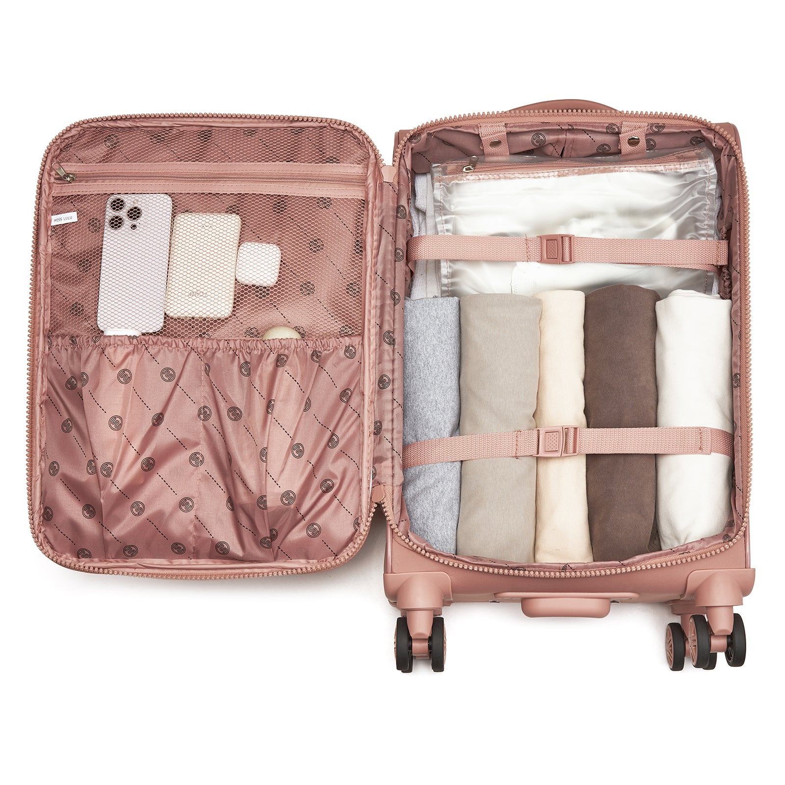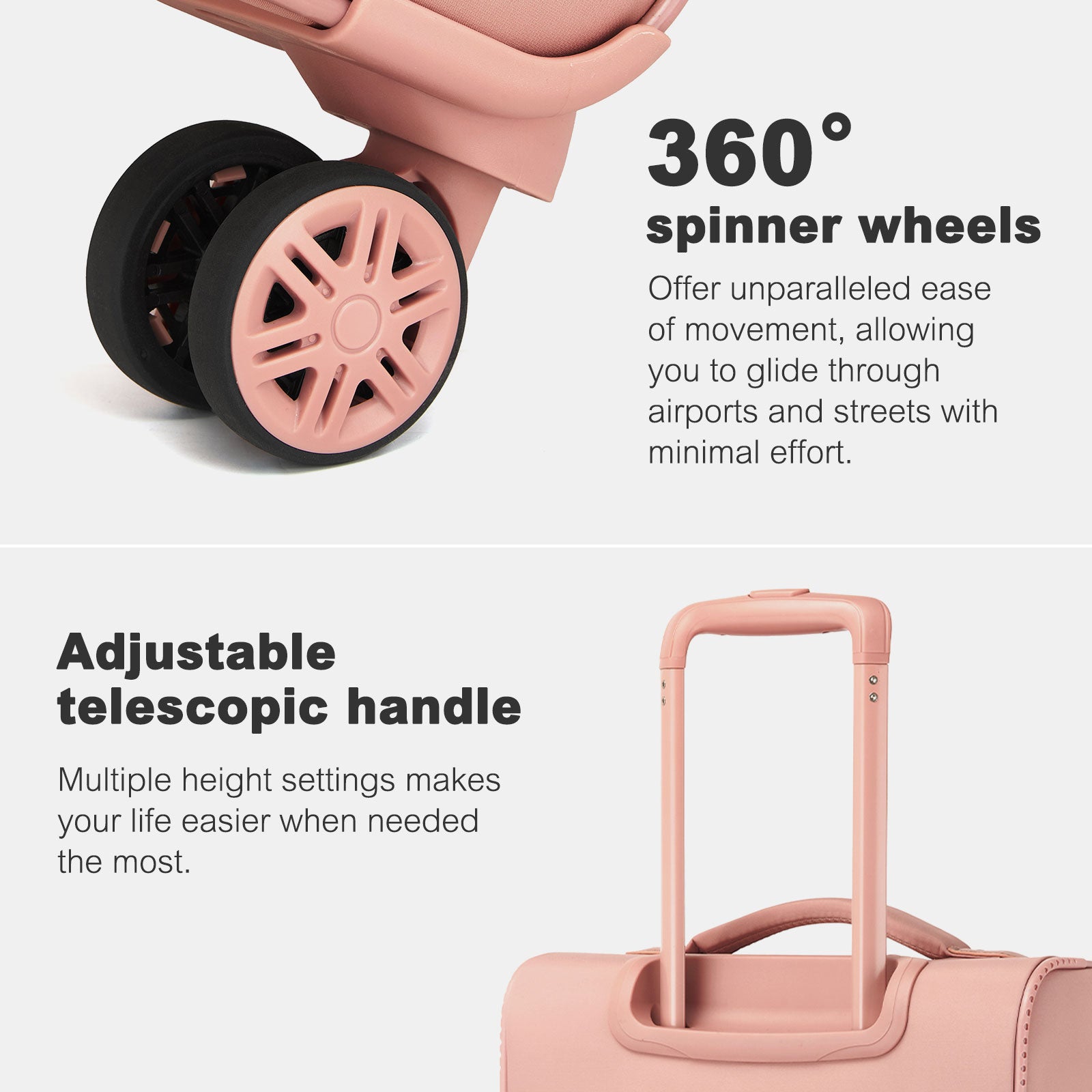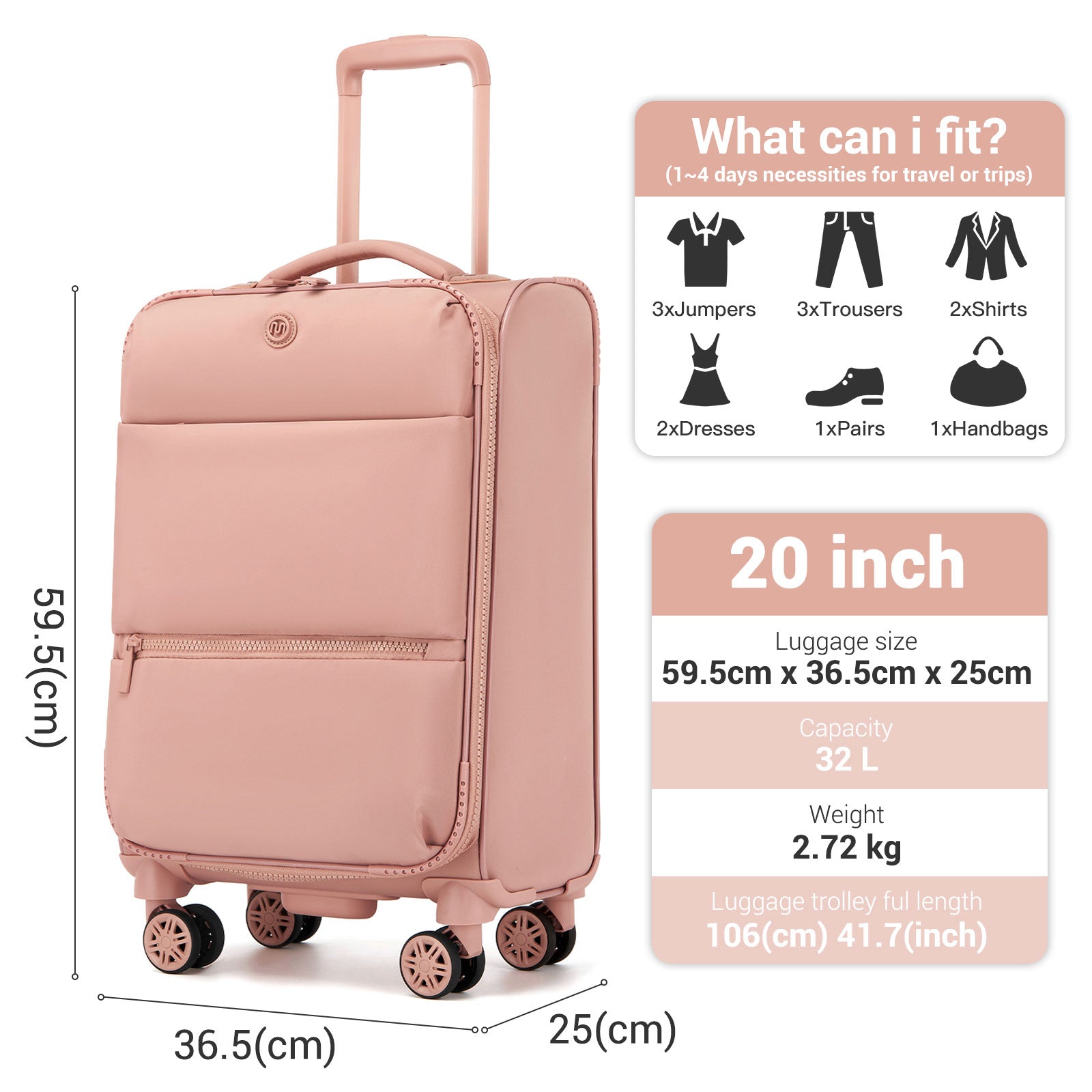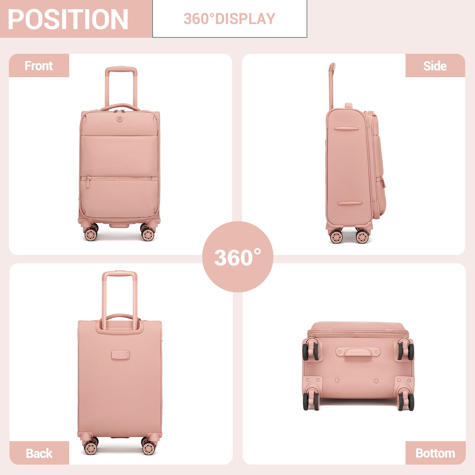 KSN2593 - 20 inch Women's Lightweight Softshell Suitcase with Spinner Wheels and Spacious Compartments - Pink