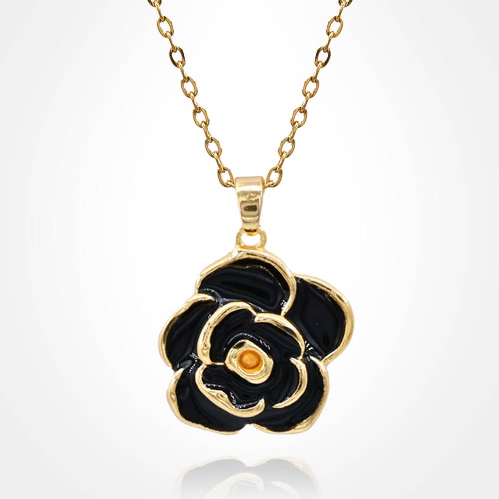 Stainless Steel Enamel Rose Pendant Necklace